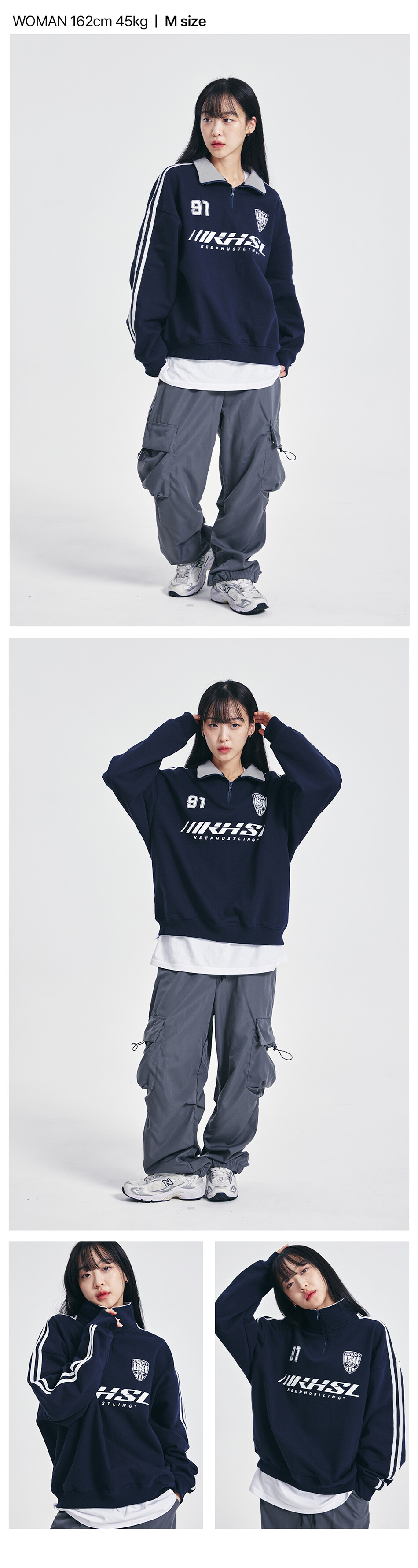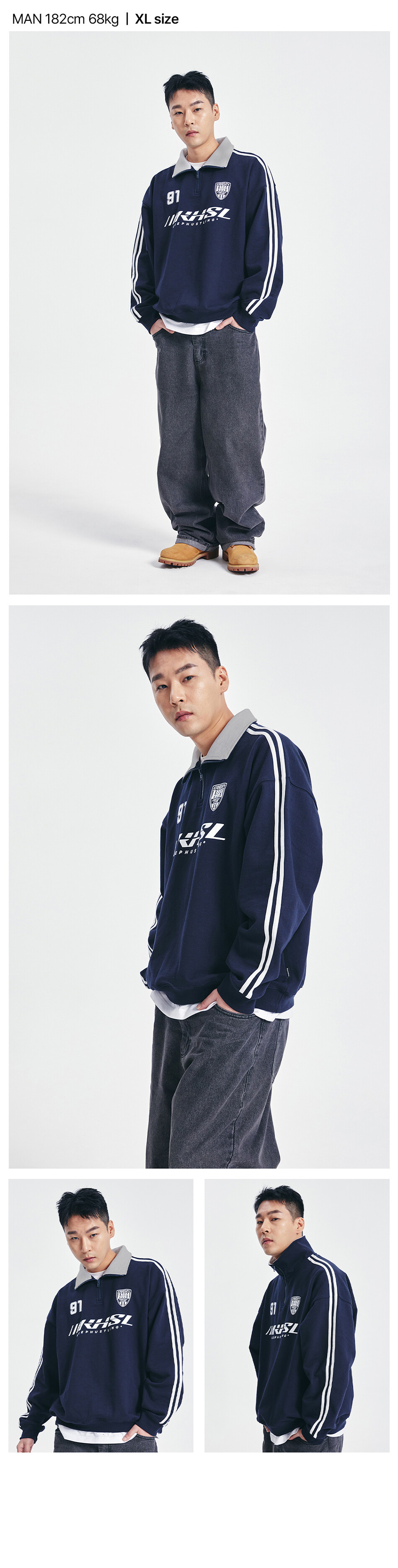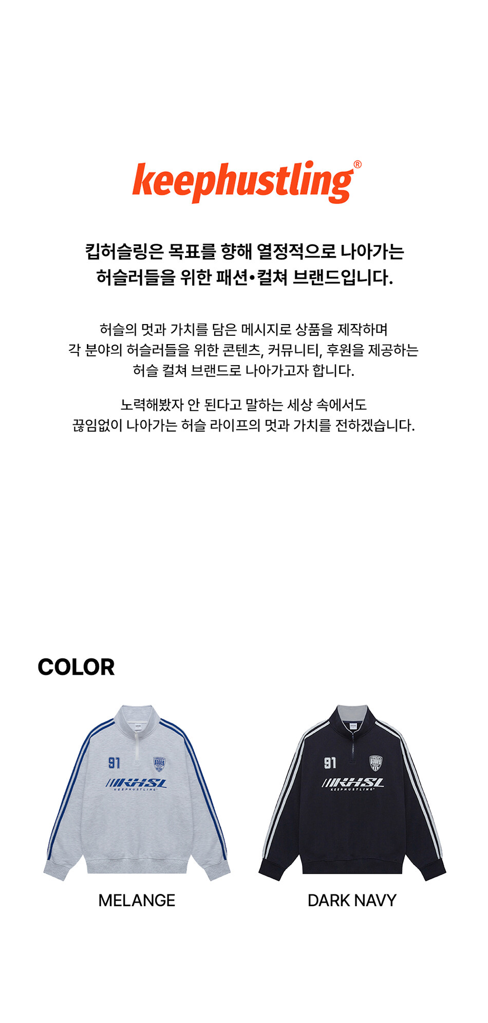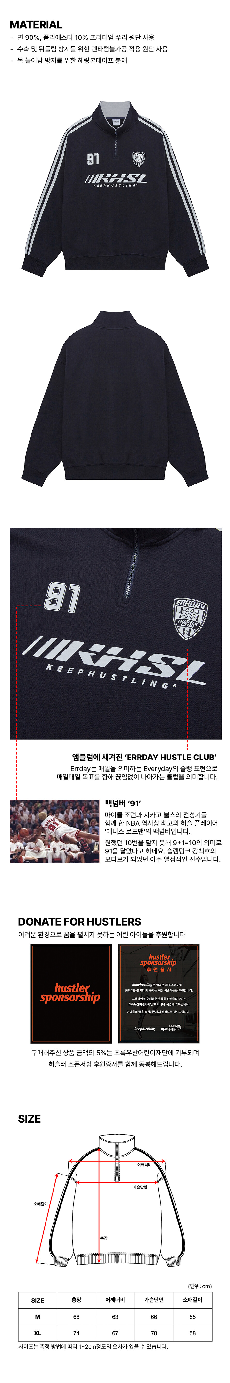 킵허슬링 하프집업 맨투맨 - 네이비